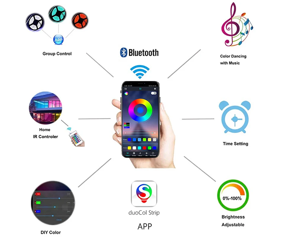 With Bluetooth control, you can customize colors, brightness, and lighting modes directly from your smartphone, while the included smart remote control provides quick access for effortless adjustments. Choose from a wide range of RGB colors and dynamic effects to match your mood, décor, or activity, creating an immersive lighting experience tailored to your space.