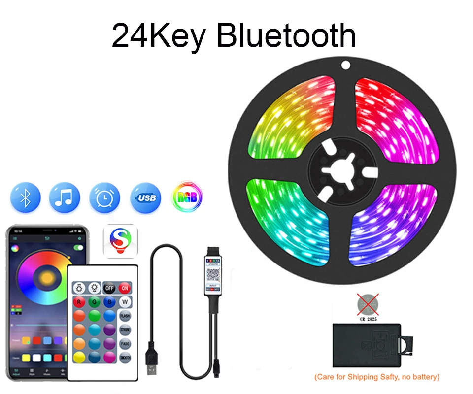 Transform your space with these Bluetooth RGB LED strip lights, a versatile and immersive 5V USB-powered RGB LED light strip designed to enhance TVs, bedrooms, gaming setups, and modern interiors. Built with high-quality 5050 SMD LEDs, this flexible LED tape delivers bright, vivid colors and smooth lighting effects that instantly upgrade your atmosphere—whether you’re watching movies, gaming, hosting a party, or relaxing at home.